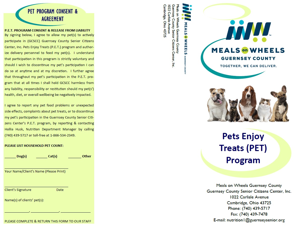 Upon the completion of a personalized assessment, home delivered hot meals are provided 5 days a week to eligible individuals, including disabled Veterans (of any age), Passport and Waiver, and frozen meals are available for the weekends and holidays upon request. Seniors who would like to receive “Meals on Wheels”, should contact the nutrition department at (740) 439-5717.